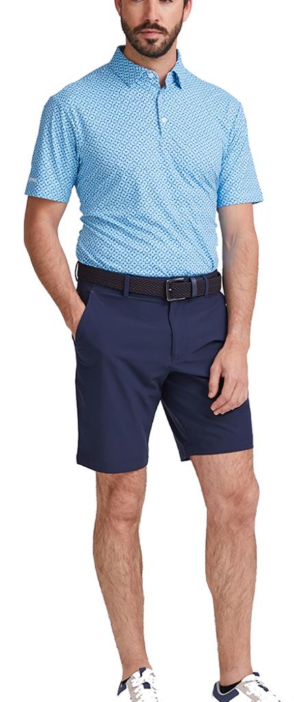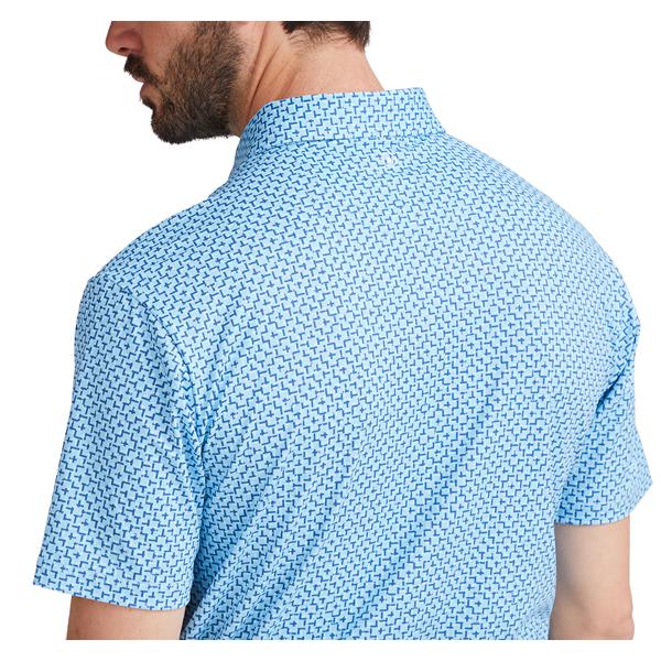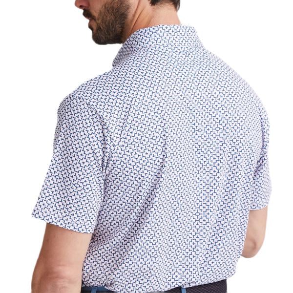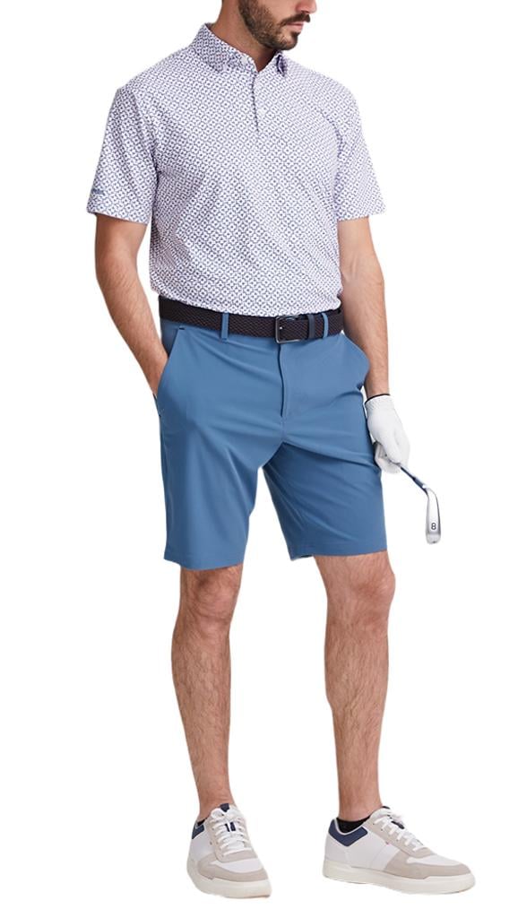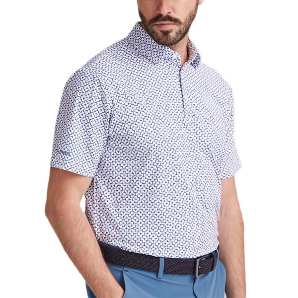 This innovative printed polo shirt is crafted with advanced moisture-wicking technology that effectively draws perspiration away from the body, ensuring you stay dry and comfortable during play. Featuring a crease-resistant fabric, this shirt maintains a sharp, tailored appearance with minimal effort. The stretch material is specifically designed to move seamlessly with you, providing unrestricted movement for your game.