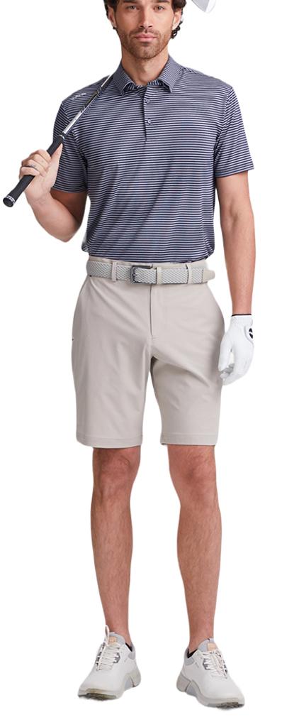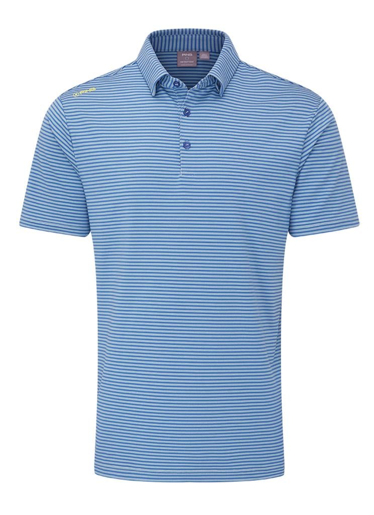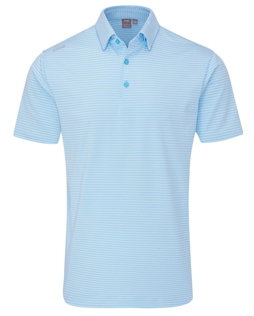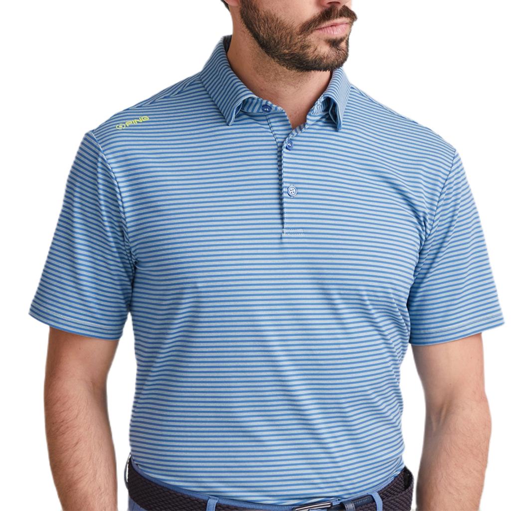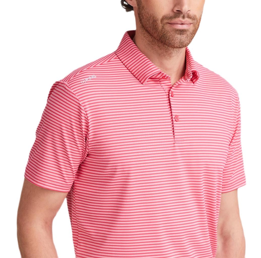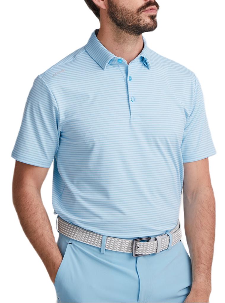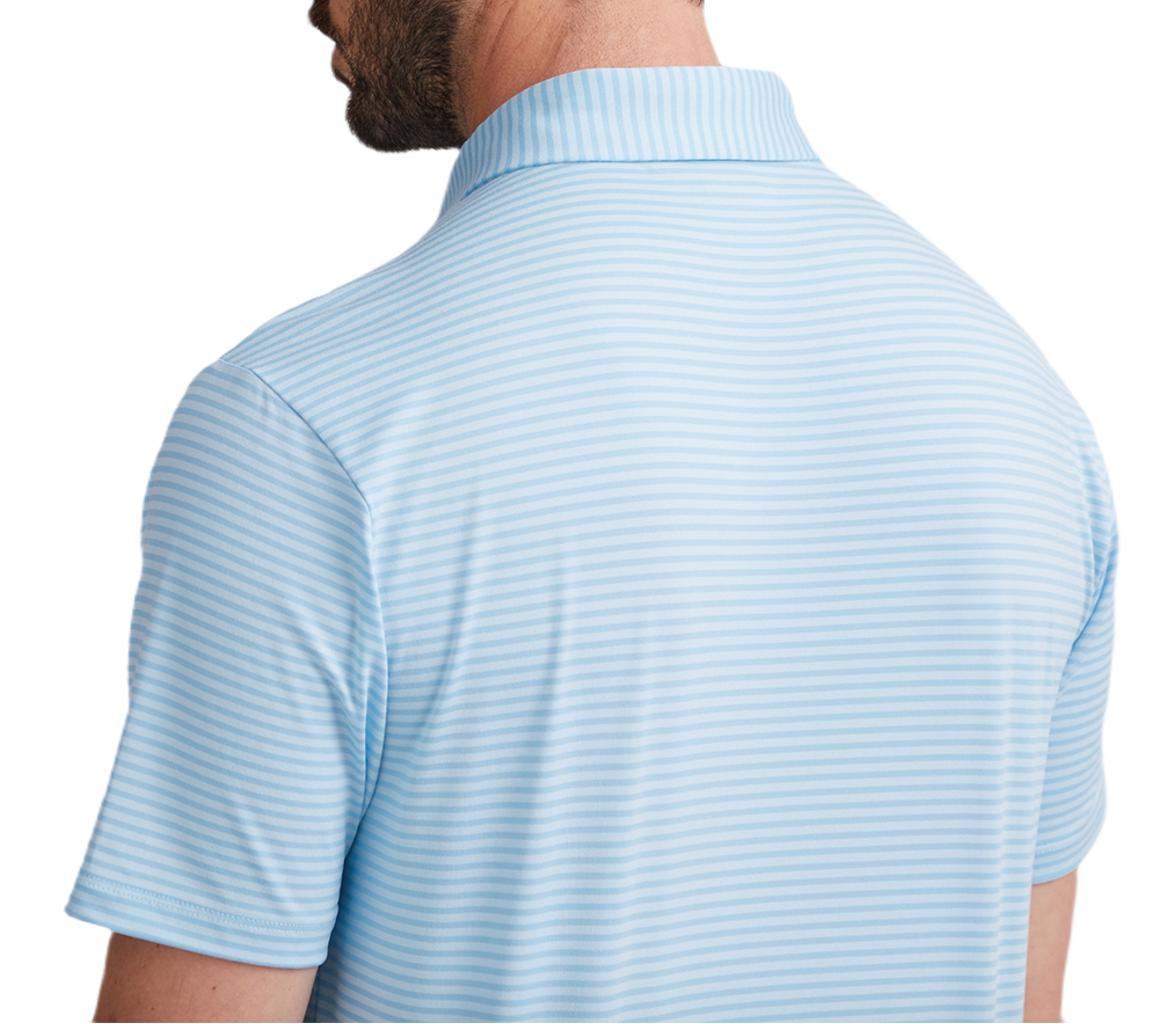 Fine striped polo, designed for moisture-wicking comfort in all conditions.