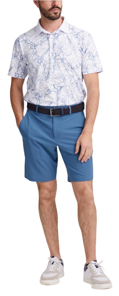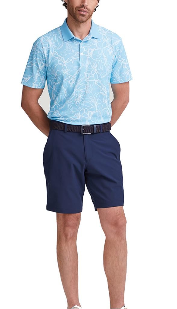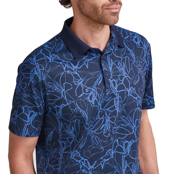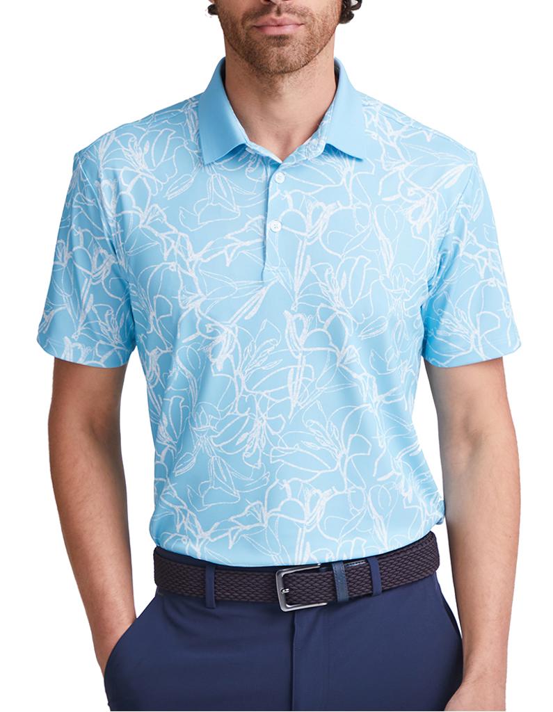 A printed pique polo designed to provide moisture-wicking comfort in all environments.