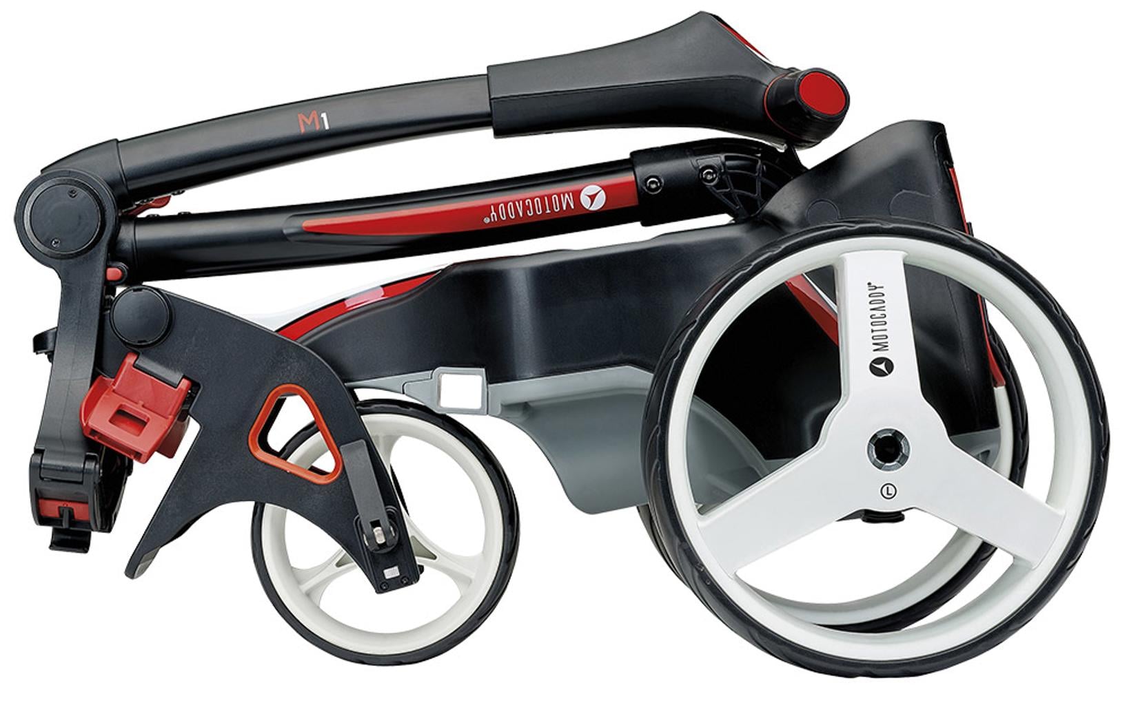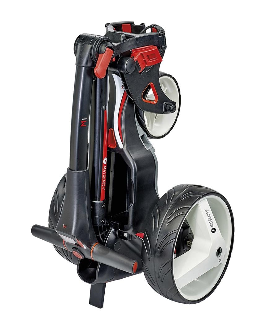 Motocaddy have created the ‘SlimFold’ mechanism to be their easiest folding design ever. They have also used a revolutionary inverted wheel design to reduce the overall folded size.