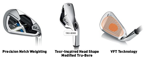 Our engineers took elements designed for Tour players, like a thinner top line and narrower sole, and incorporated them into highly forgiving irons with a higher MOI so they can be played by a wide range of golfers. - Modified Tru-Bore