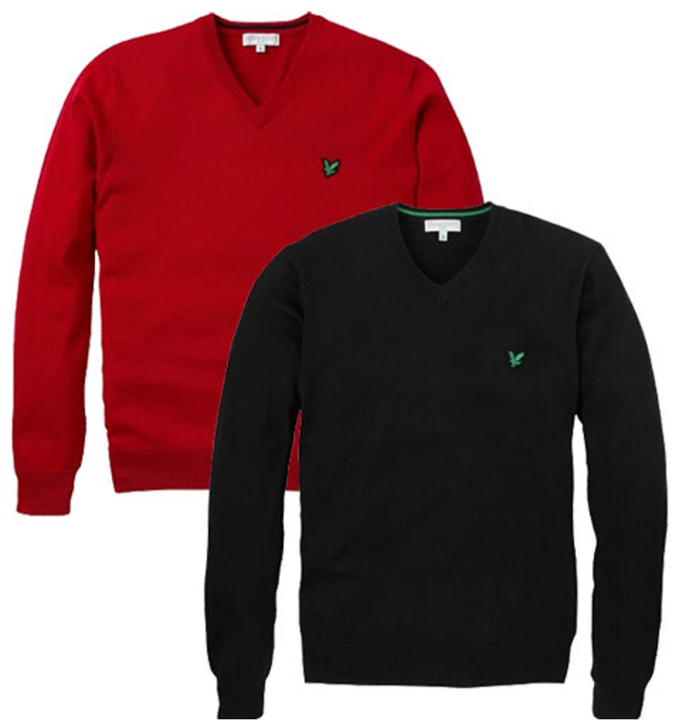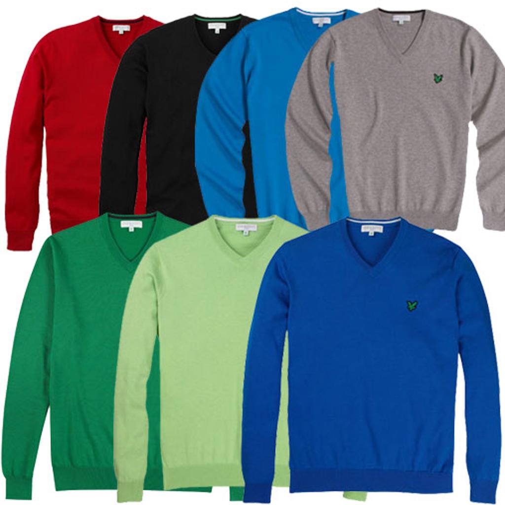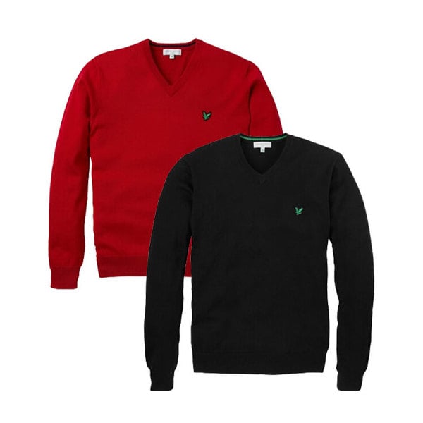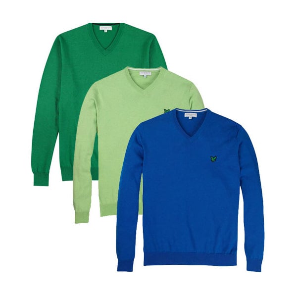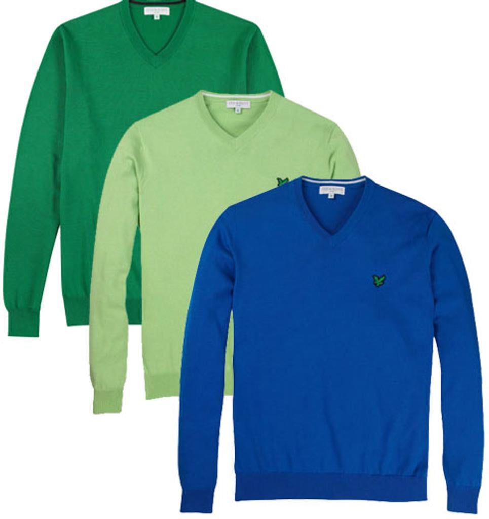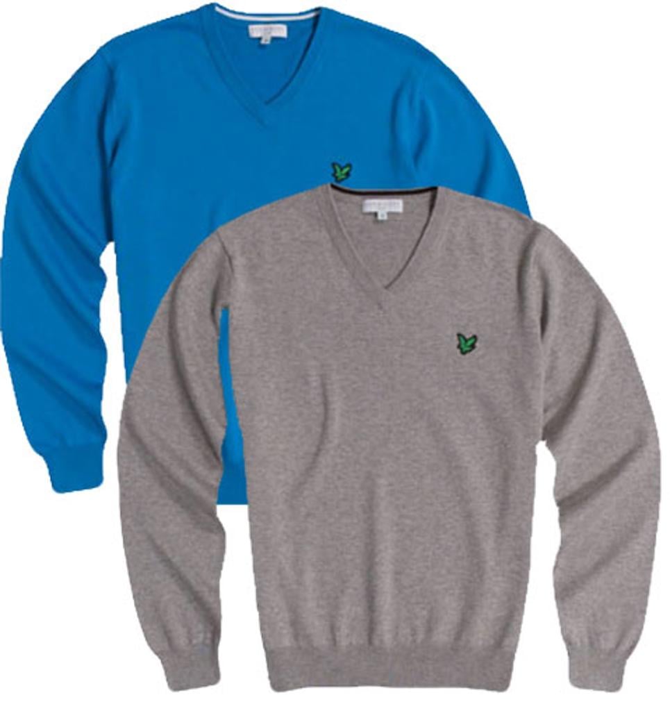 Our Lyle and Scott Club cotton v-neck sweater has the Green Eagle badge on the left chest.