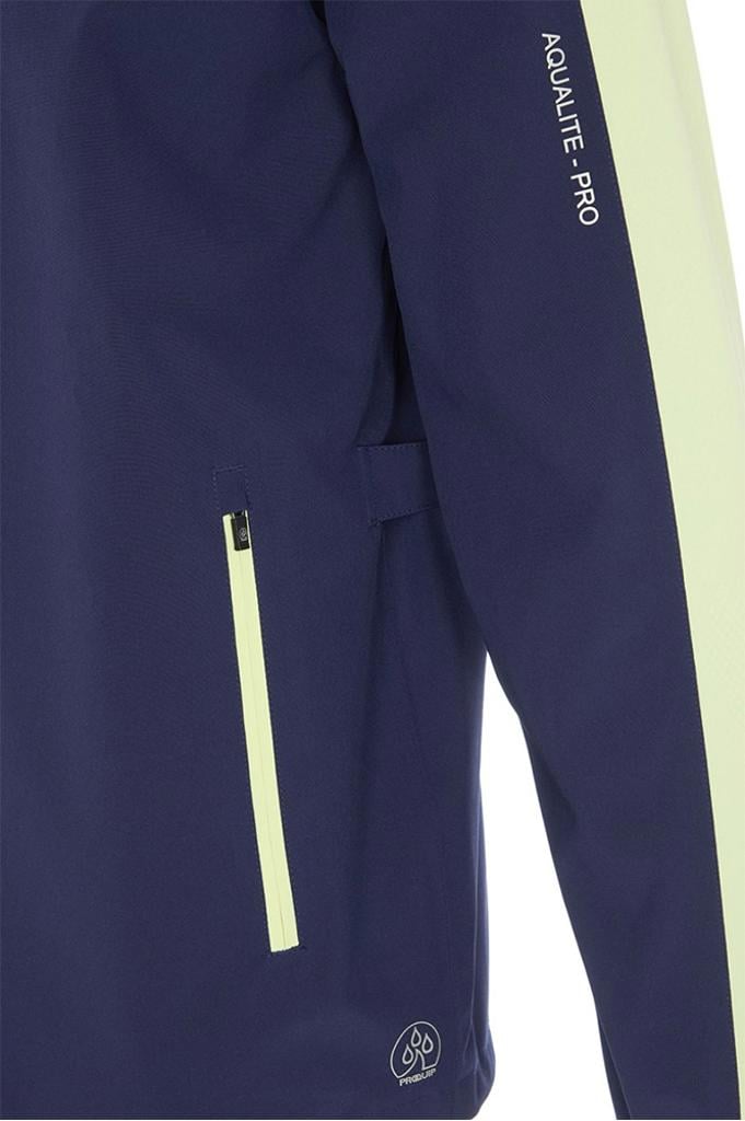 ProQuip Aqualite Pro is an exceptionally lightweight golf rain jacket designed for performance, crafted from a premium soft-feel outer fabric that combines stretch and breathability, ensuring utmost comfort and unrestricted movement on the course.