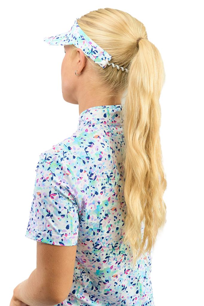 Soft pastels and scattered abstract shapes create a dreamy, airy pattern reminiscent of the reflection on water.