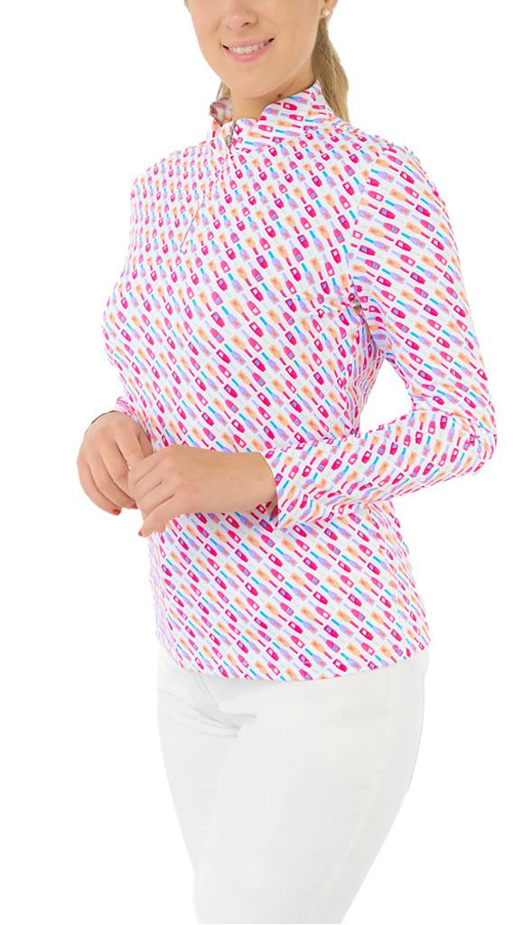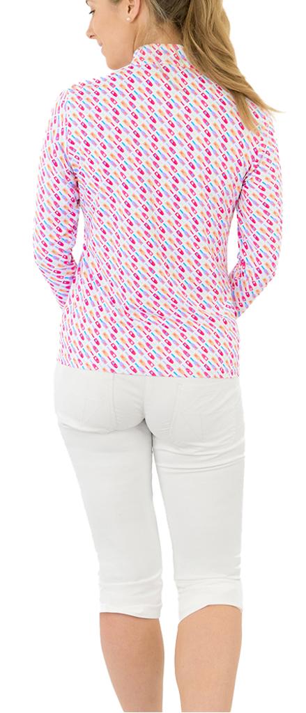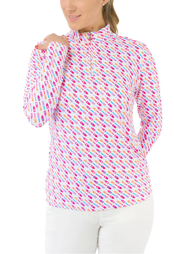 A vibrant and playful bottle motif in radiant pinks, oranges, and purples creates a dynamic style, perfect for showcasing your personality on the course.