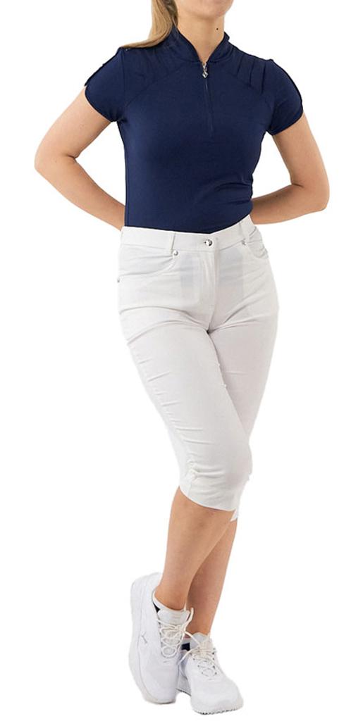 Introducing the Olivia Cap Sleeve Zip Top – a versatile garment designed with a flattering and feminine panel detail across both shoulders.