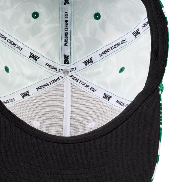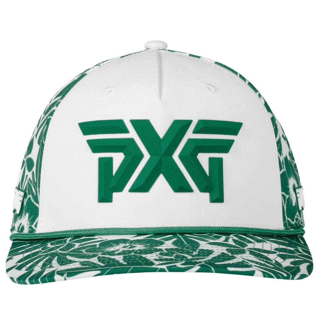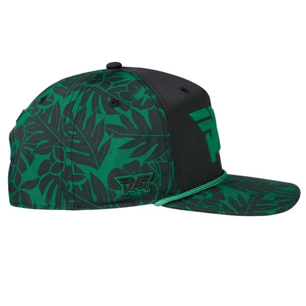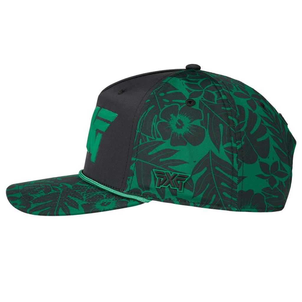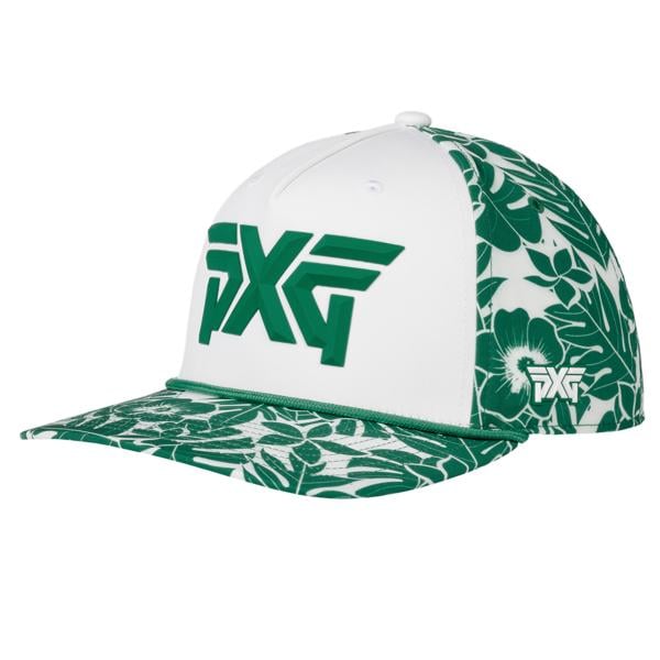Add a touch of tropical flair to your game with the PXG Aloha 5-Panel Curved Bill Cap 2026. This cap features a vibrant, hand-drawn Aloha print showcasing native Hawaiian leaves and flowers, combining eye-catching style with day-to-day comfort.
