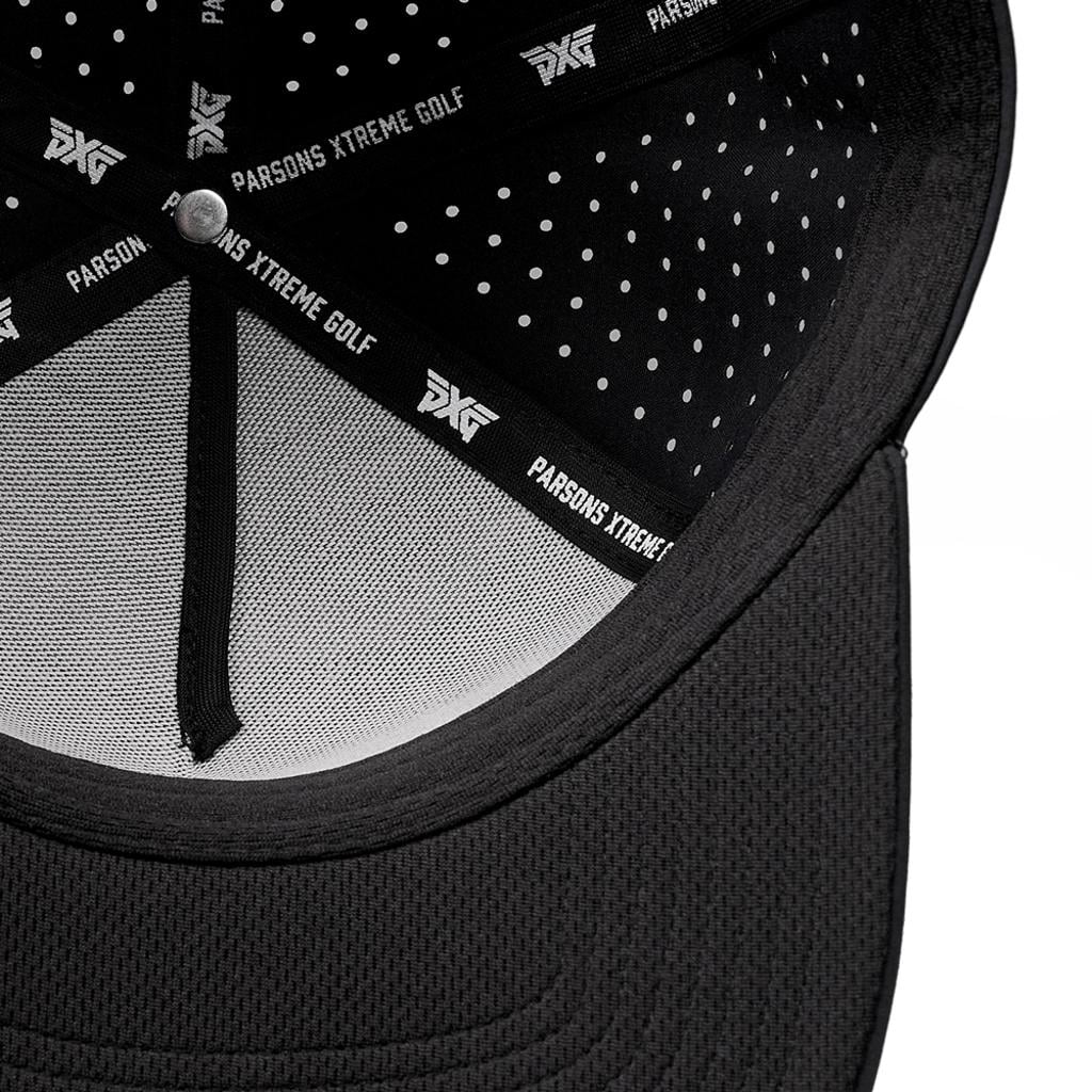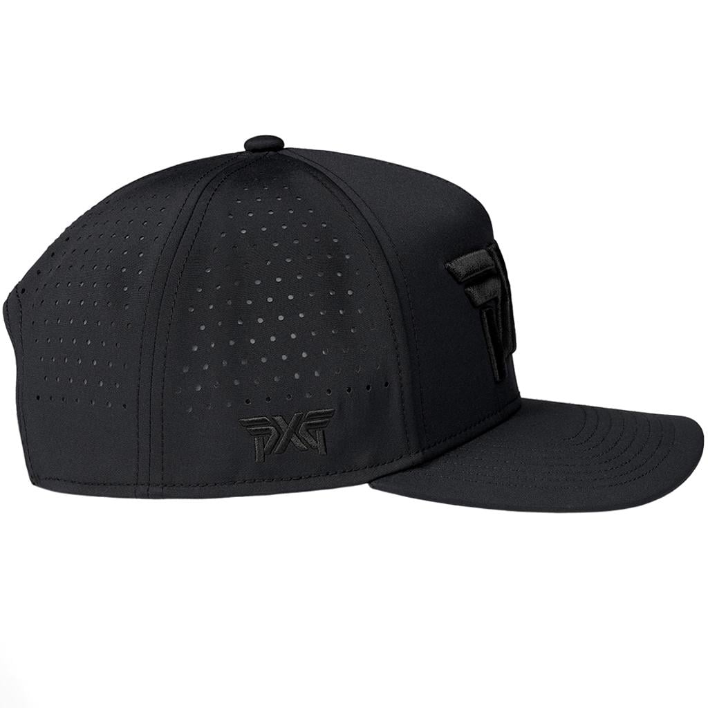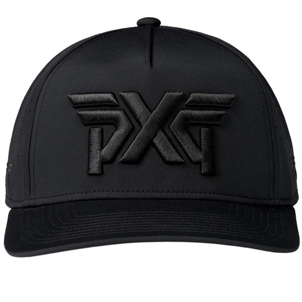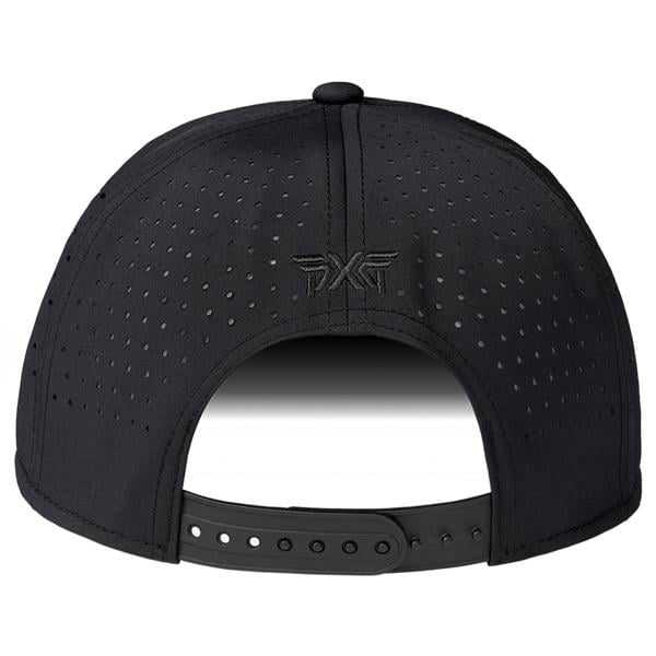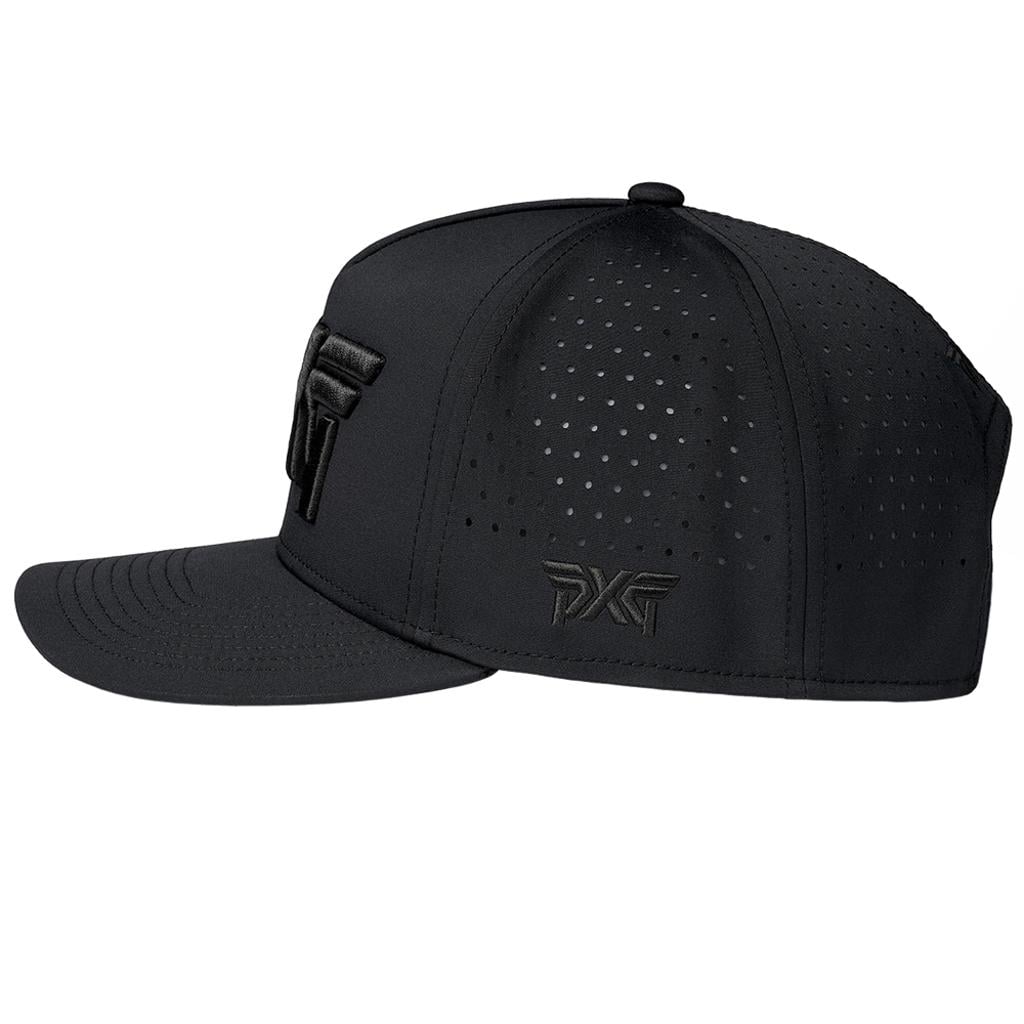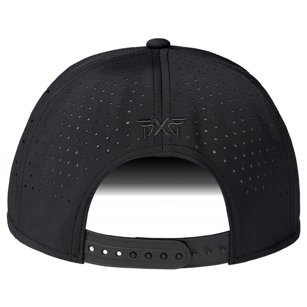 Refresh your golf attire with the PXG Blackout 5-Panel Snapback Cap, which fuses contemporary all-black aesthetics with breathable comfort, making it suitable for both on-course and off-course wear.
