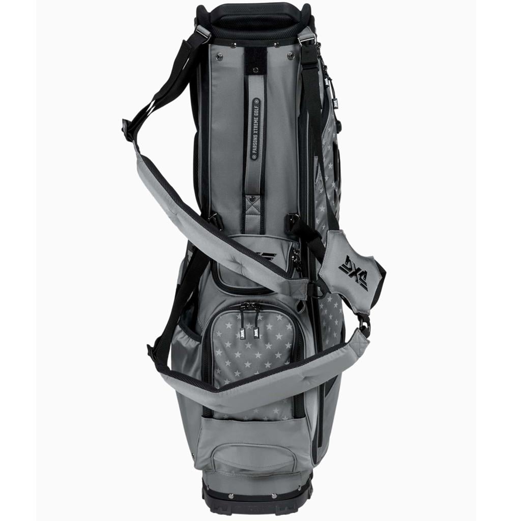 The PXG Freedom Collection Xtreme Carry Stand Bag combines a bold patriotic design with exceptional versatility, making it suitable for golfers who prefer to walk or ride. With striking stars-and-stripes detailing, this bag not only offers a fashionable appearance but also prioritises functionality.