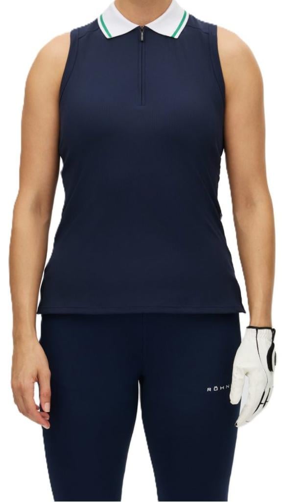 Featuring a sleeveless design with a subtle racerback, this polo shirt allows for freedom of movement during every golf swing, while the zip neck offers the ability to adjust for added warmth. This versatile classic top pairs effortlessly with both skorts and lightweight golf trousers, making it a staple for any wardrobe.
