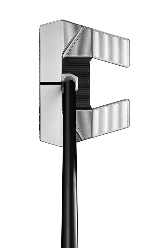 The new Phantom 5 OC is designed with a revolutionary Onset-Centre (OC) configuration. The straight shaft is aligned perfectly with the putter's centre of gravity, resulting in ultra-forgiving performance coupled with low torque. The distinctive winged design has advanced, featuring a deeper face, subtly rounded contours, and an innovative full-face Studio Carbon Steel insert that delivers a softer sound and improved feel.