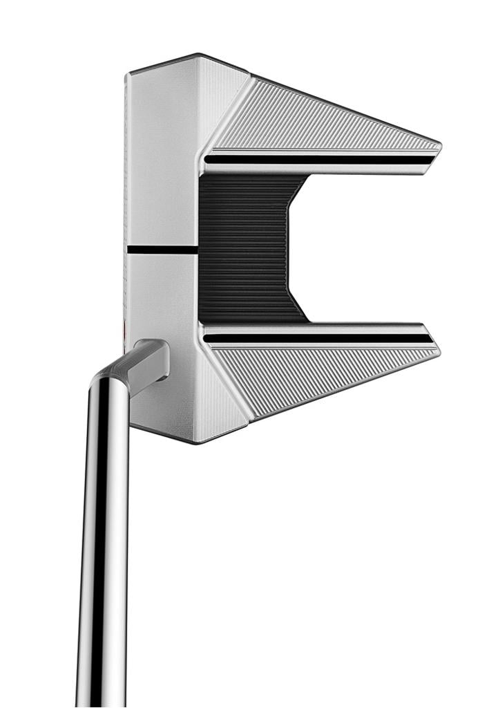 The Phantom 7.5 showcases an exceptional design trusted by professionals on the Tour, meticulously refined to accentuate alignment, forgiveness, and feel. Its long, sharp wings paired with a blade-like topline deliver an elegant appearance while offering forgiving performance. Now featuring a deeper face to solidify ball positioning, coupled with a new full-face Studio Carbon Steel insert that enhances feel at impact. This model is constructed with a specialised jet neck configuration.