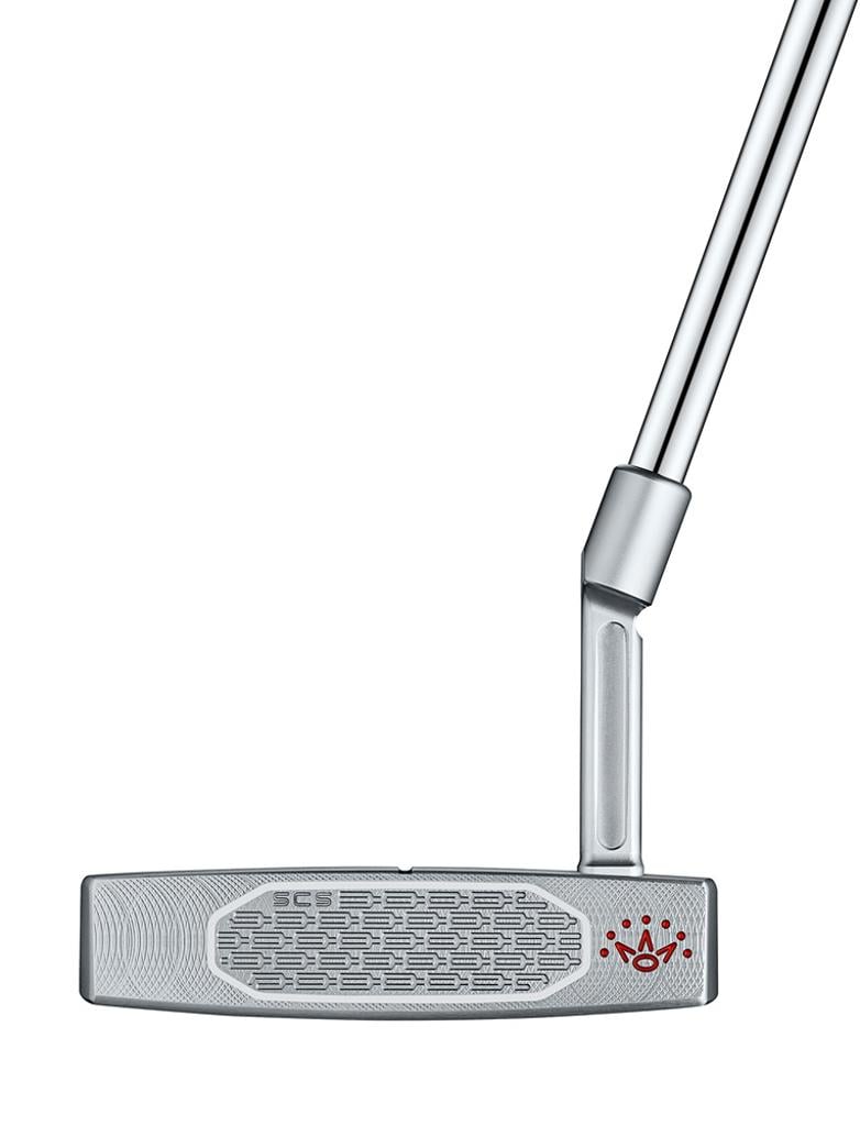 With an integrated 6061 aluminium sole plate that allows for higher MOI with more weight in the perimeter, the heavier head with two 25-gram tungsten sole weights is counterbalanced by a custom-designed 17-inch, 136-gram pistol-style grip perfectly matched to the longer, stiffer shaft.