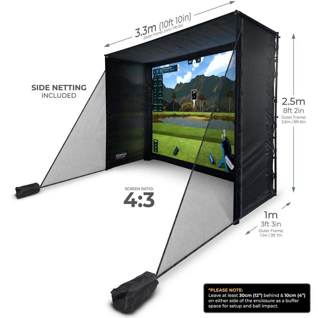 Designed to fit snugly in compact areas, this enclosure boasts an impressive depth of just 1 metre, making it simpler than ever to install a high-end golf simulator in your home. Crafted for resilience and styled with sleek, sound-dampening screens, the SimSpace enclosure fosters a completely immersive golf experience—all while occupying minimal space. It encapsulates everything you cherish about home golf simulation, now accessible in locations you never thought possible.