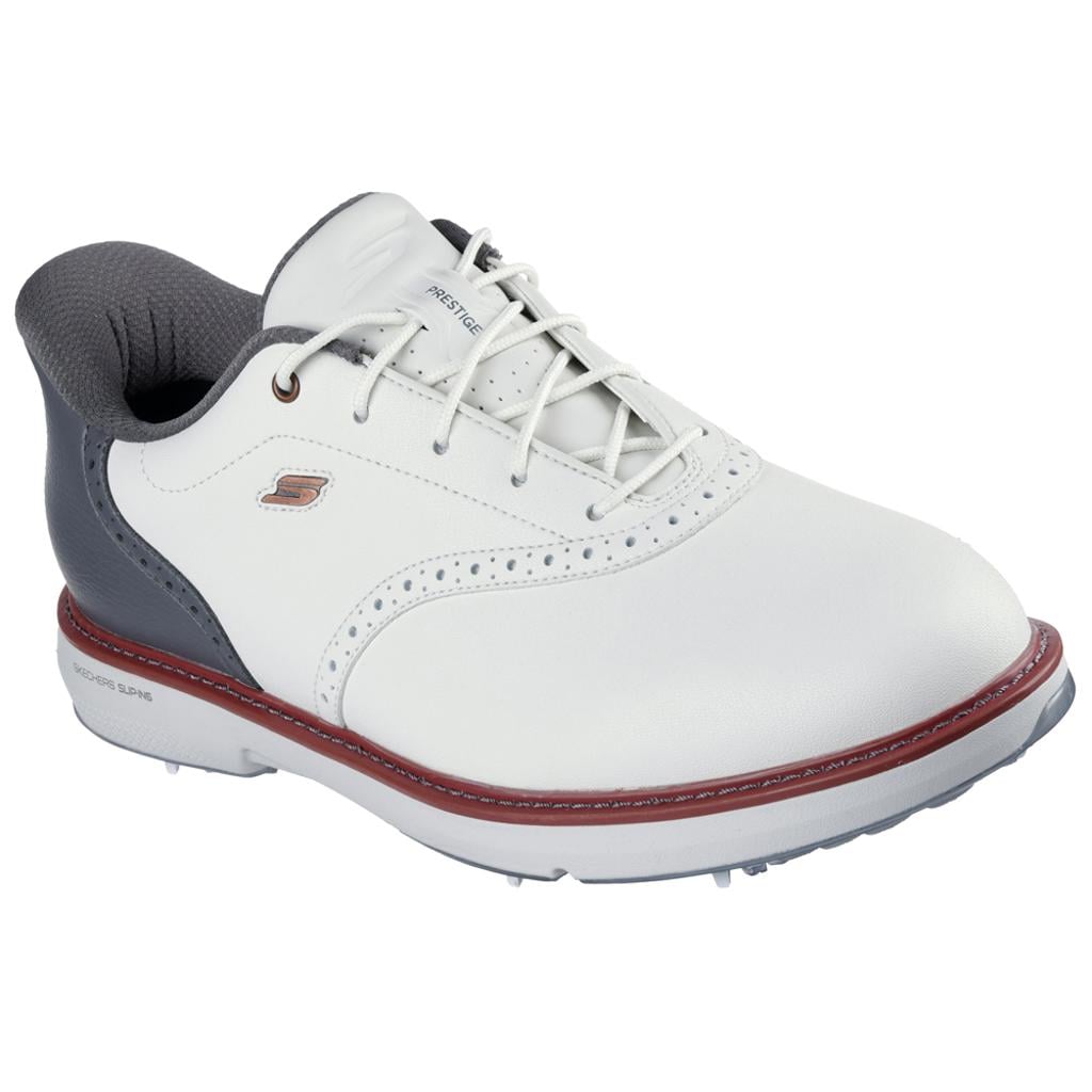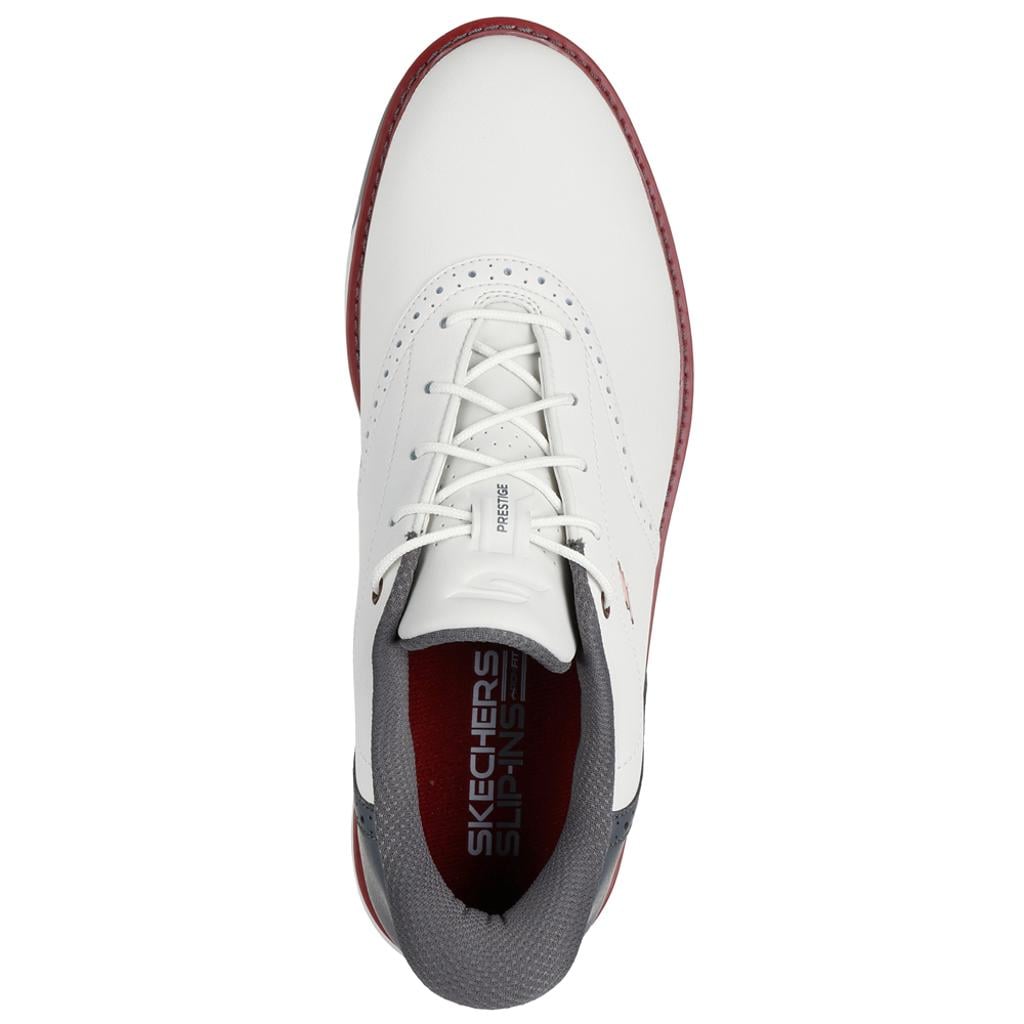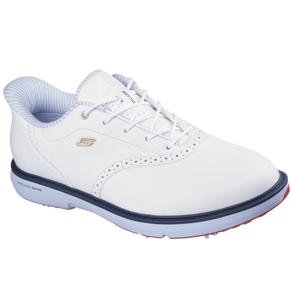 Experience the course in classic style combined with contemporary comfort by slipping on the Skechers Hands Free Slip-ins®: GO GOLF® Prestige. Crafted with our innovative Heel Pillow™ technology, this waterproof golfing shoe features a sophisticated lace-up leather upper adorned with saddle oxford accents. Enjoy the personalised comfort of a removable Arch Fit® insole, complemented by lightweight ECO FLIGHT™ cushioning and interchangeable Tour Flex Pro SoftSpikes®.