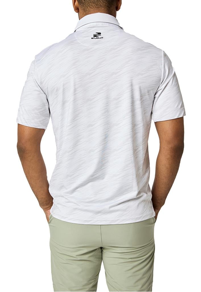 This exceptional garment showcases a subtle all-over print pattern while utilising a four-way stretch fabric that ensures optimum comfort and flexibility. The ALICANTE polo is engineered with UPF50 protection, effectively shielding you from harmful UV radiation, all while promoting freedom of movement, breathability, and efficient moisture management. To further enhance its appeal, a raised textured Stuburt logo graces the right shoulder and upper back, adding a touch of premium detailing to this versatile piece.