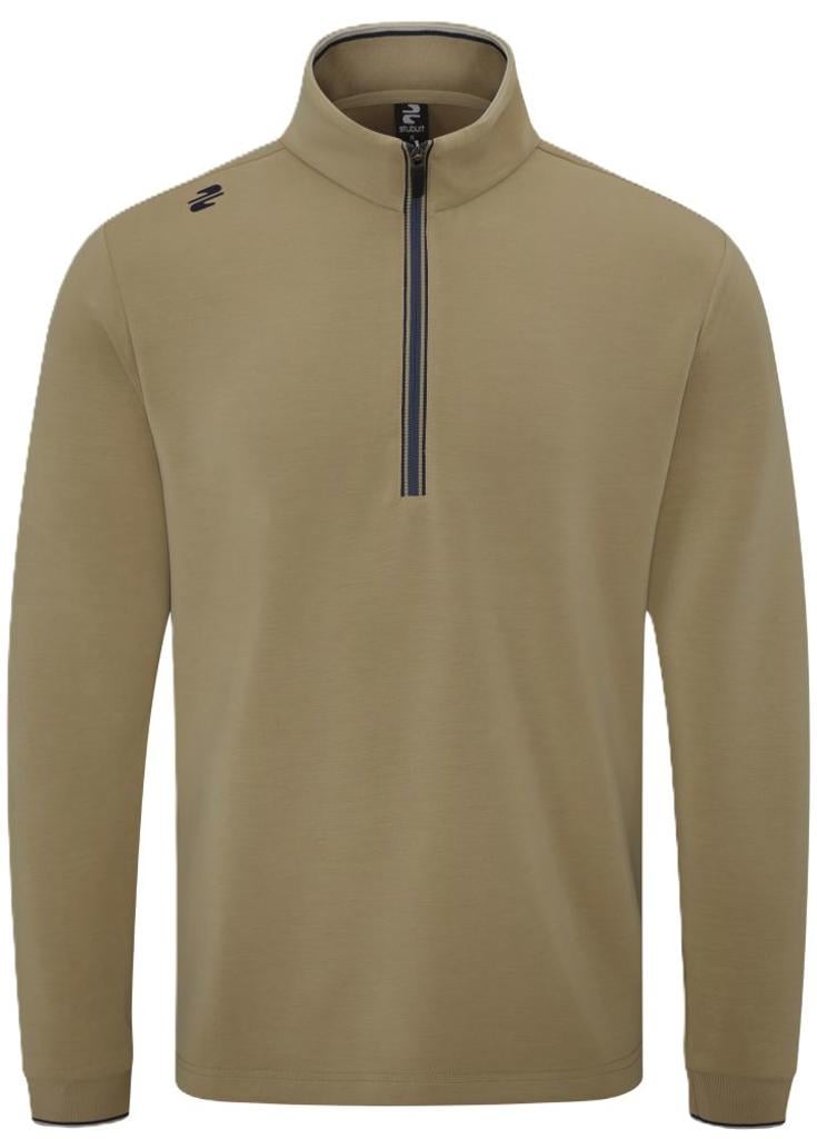 This garment boasts a breathable, moisture-wicking construction that keeps you cool during warm weather. Its distinctive contrast zip tape, along with the ribbed collar and cuffs, adds a contemporary and fashionable element, making it a lightweight and versatile second layer. The raised textured Stuburt logo featured on the right shoulder and upper back introduces a refined signature detail to finalise the overall design.