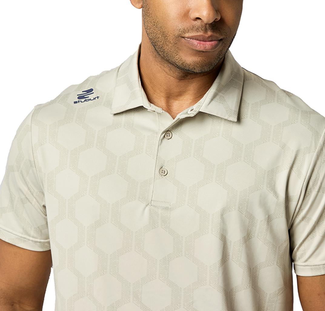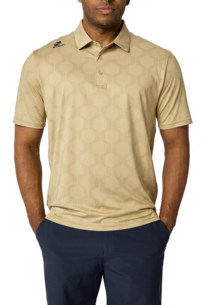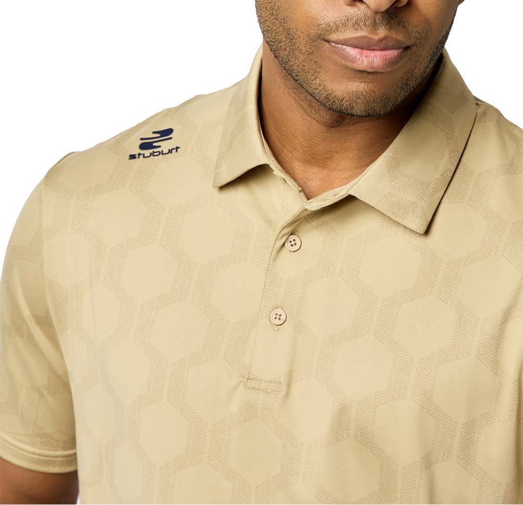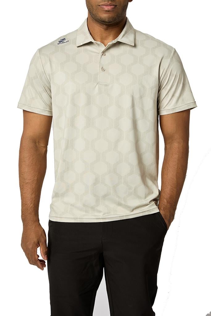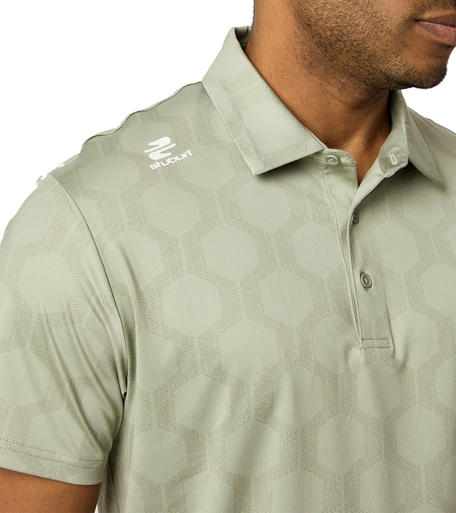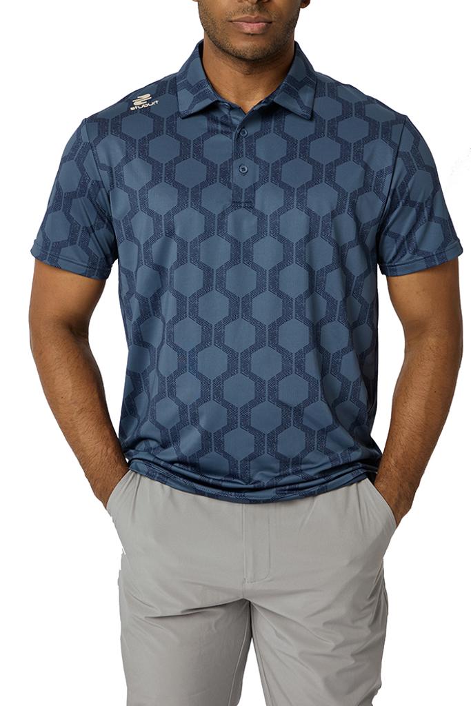 The VIBE Polo Shirt showcases an abstract hexagon all-over print, designed to make you feel fantastic both on and off the course.