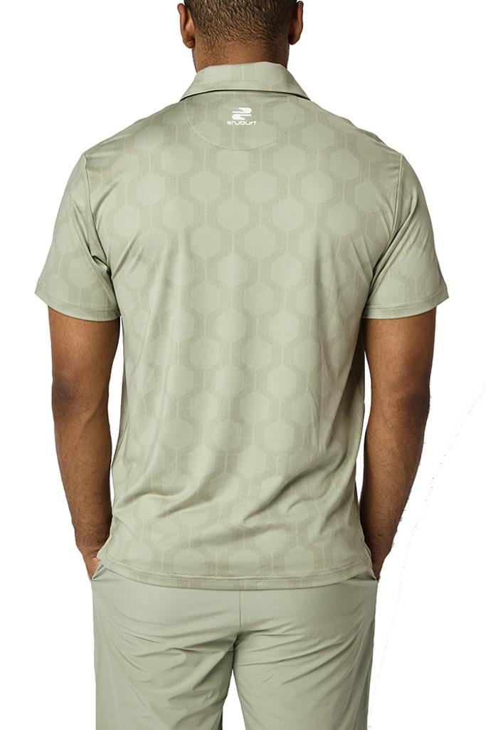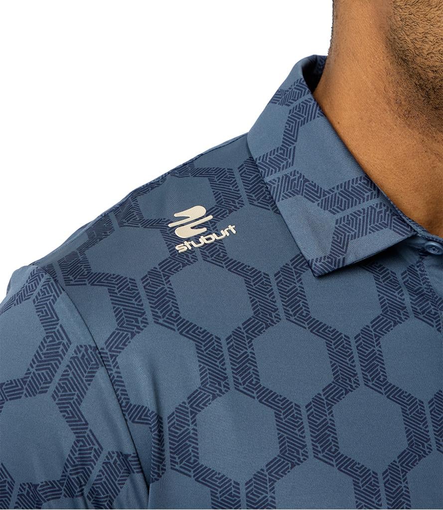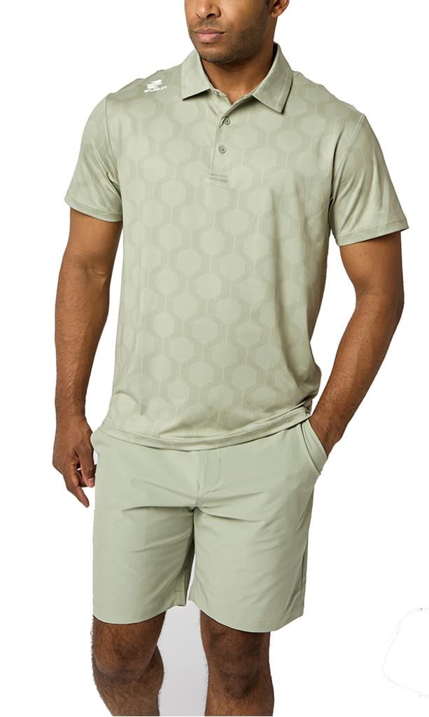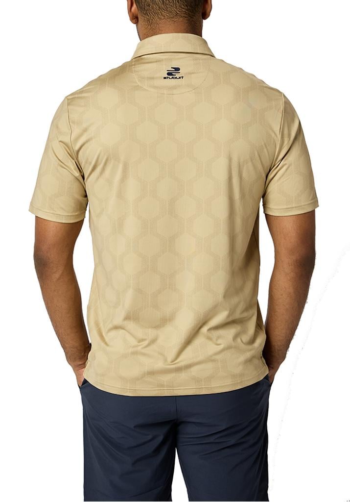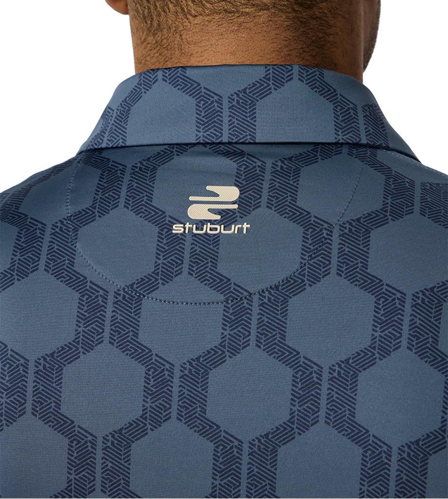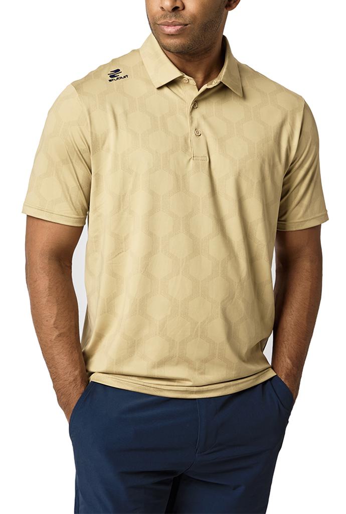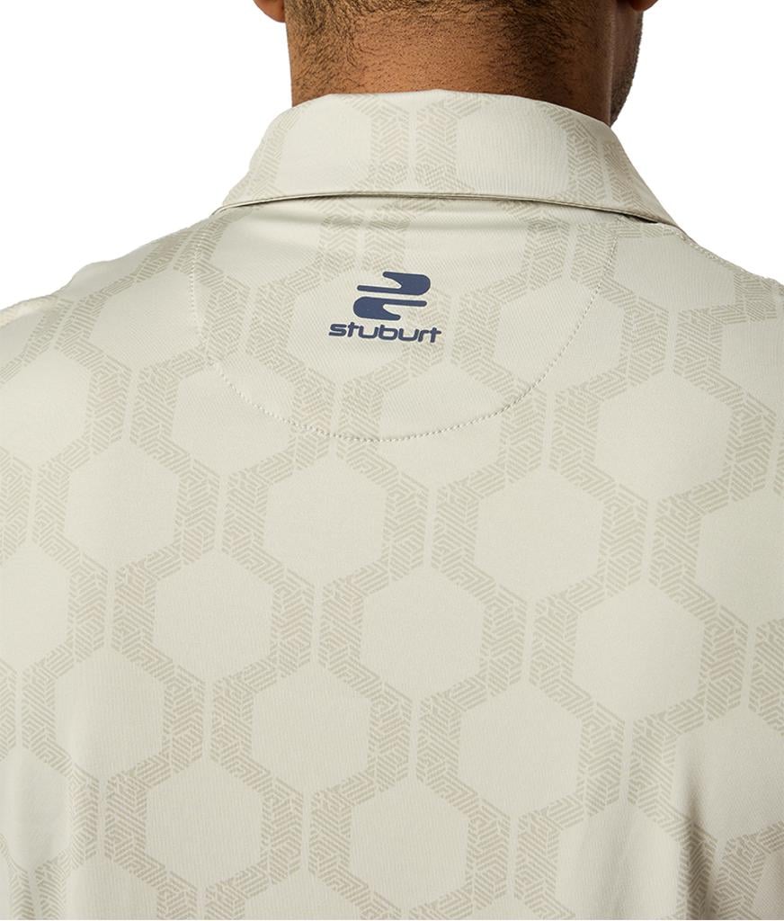 The VIBE Polo Shirt showcases an abstract hexagon all-over print, designed to make you feel fantastic both on and off the course.