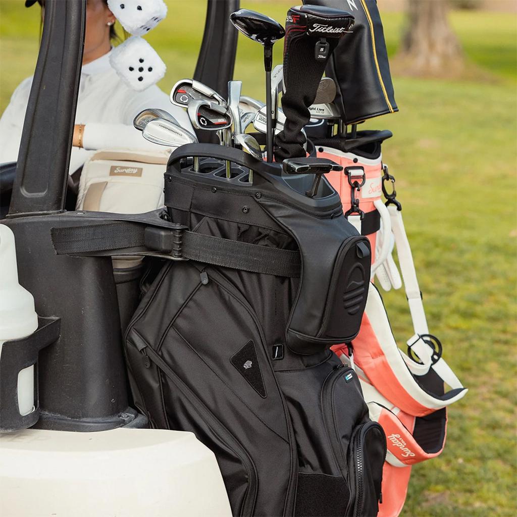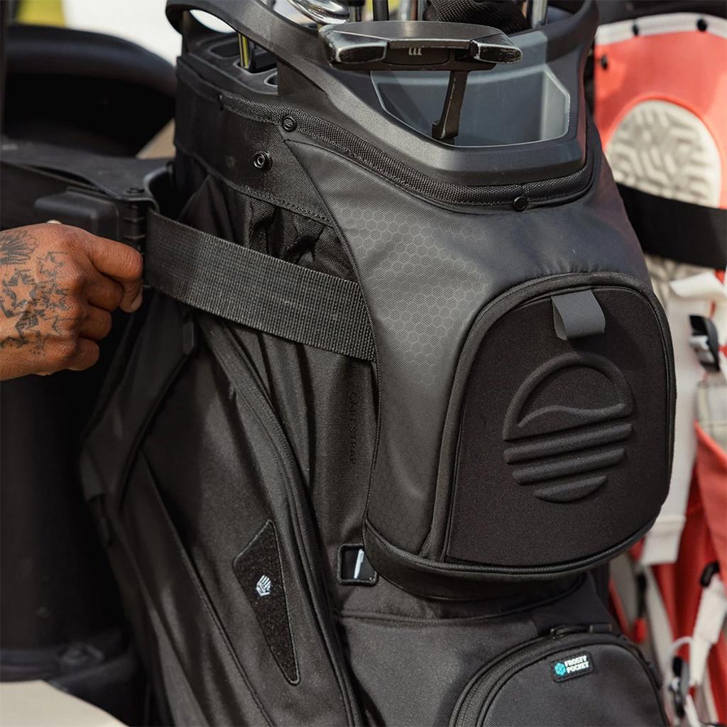 Crafted to blend style with functionality, this bag presents a design that is both robust and timeless. It boasts an abundance of pockets, ready to accommodate all your essentials and even some non-essentials. Whether you're embarking on a leisurely nine holes or conquering an intensive eighteen, The Big Rig in Matte Black guarantees you arrive looking sharp while performing even sharper.