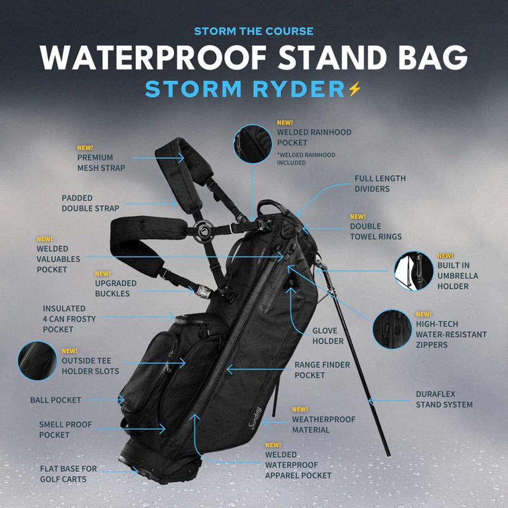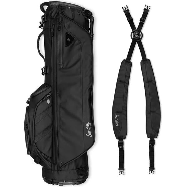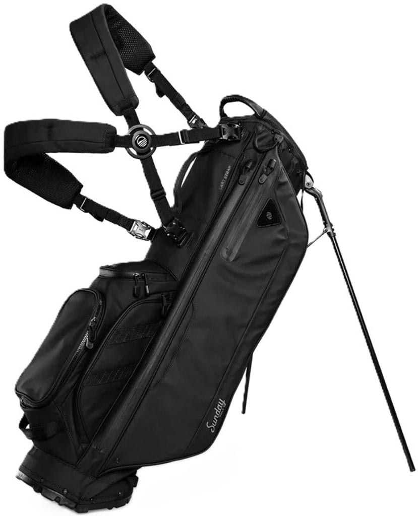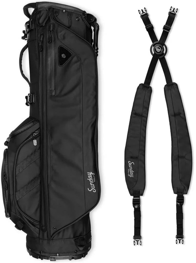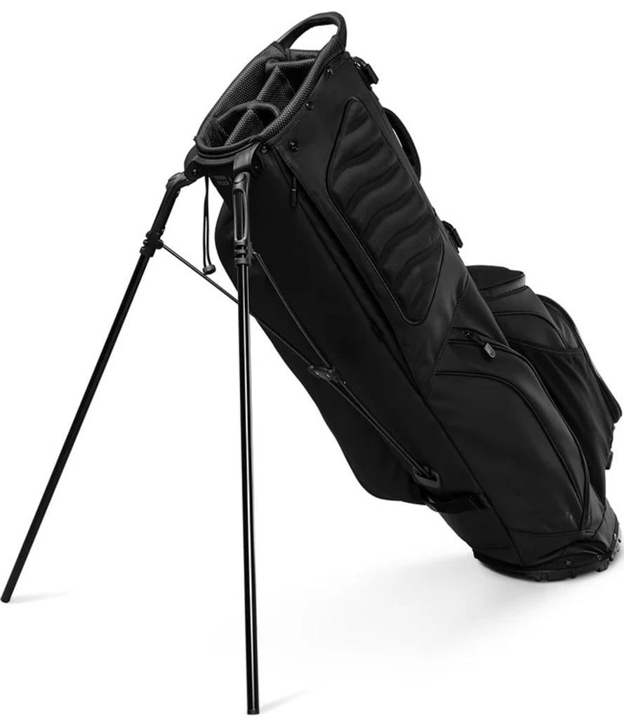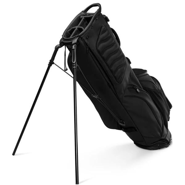 The bag features dedicated compartments for tees and gloves, as well as a secure, velour-lined pocket for valuables