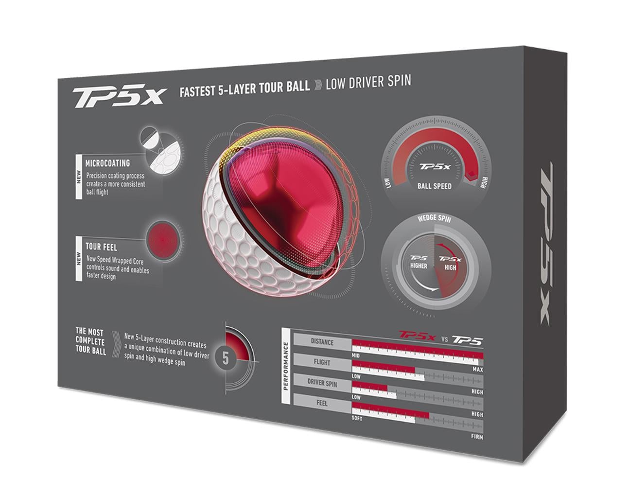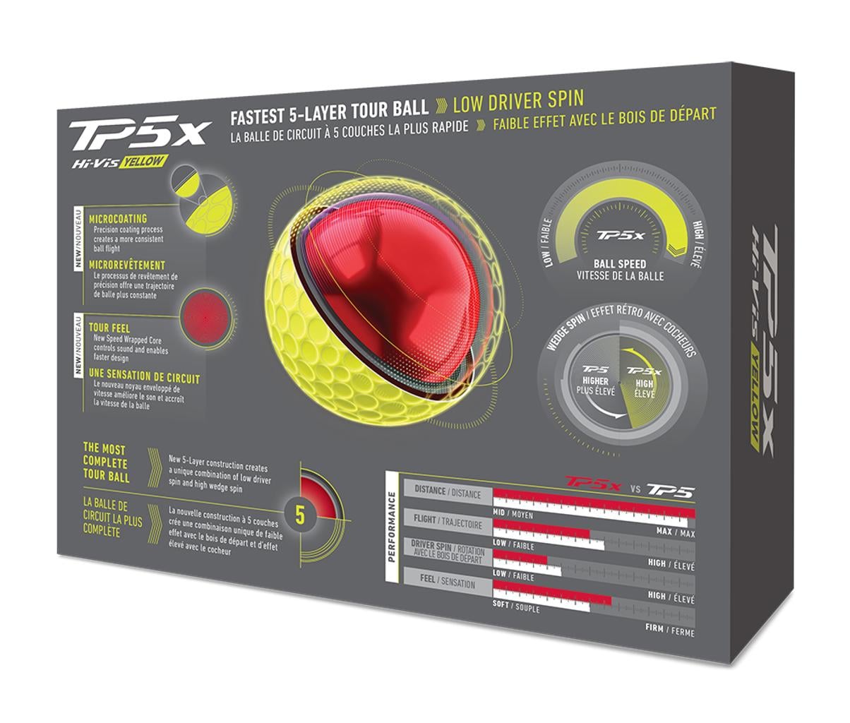 The TP5x golf balls are crafted from the successes of the best Team TaylorMade athletes globally, aiming to deliver low spin along with extraordinary distance off the tee, whilst providing world-class feel and control in crucial moments around the green.