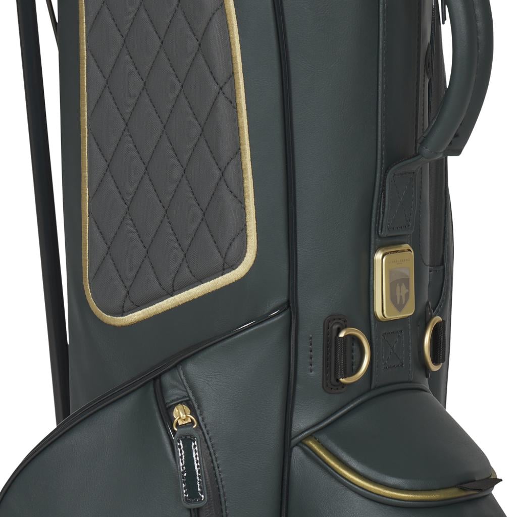 The exclusive Tee Time LINKSLEGEND Members Bag showcases all the features of the standard LINKSLEGEND Members bag, enhanced with premium metallic gold hardware and distinctive pine patent PU piping. This unique combination of contemporary conveniences and timeless design results in an outstanding carrying experience.