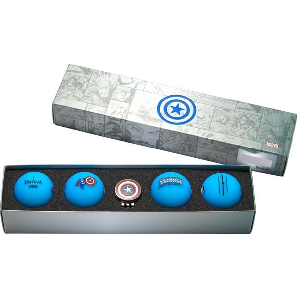 - Comes with 4 VIVID golf balls showcasing striking Captain America designs, accompanied by a collectible magnetic hat clip and ball marker.