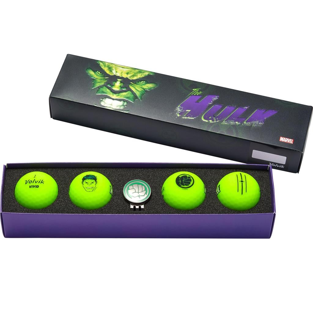 - Set includes 4 striking golf balls adorned with bold Hulk designs alongside a collectible Hulk magnetic hat clip and ball marker.