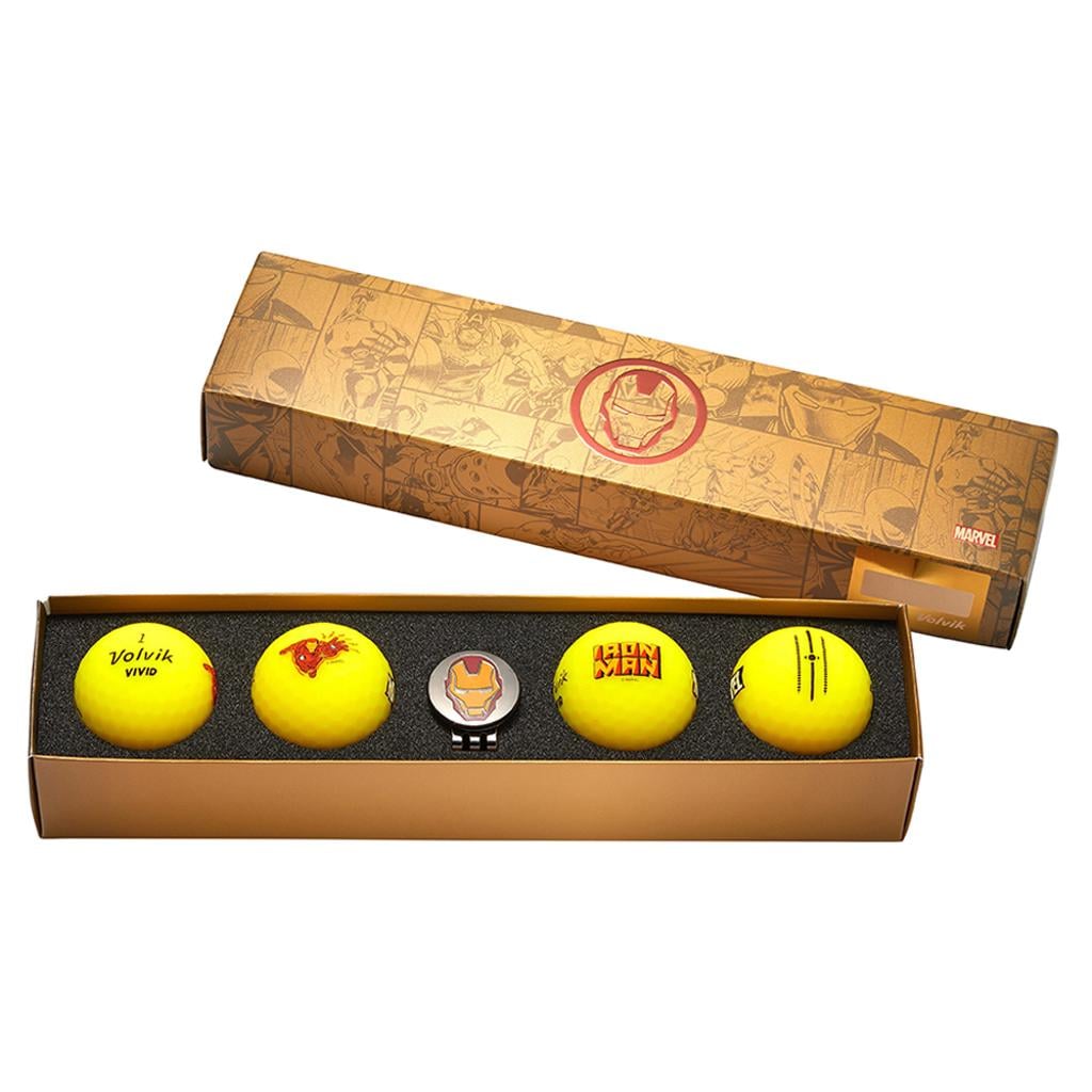 - Includes: 4 VIVID golf balls adorned with eye-catching Iron Man designs, plus a collectible Iron Man magnetic hat clip/ball marker
