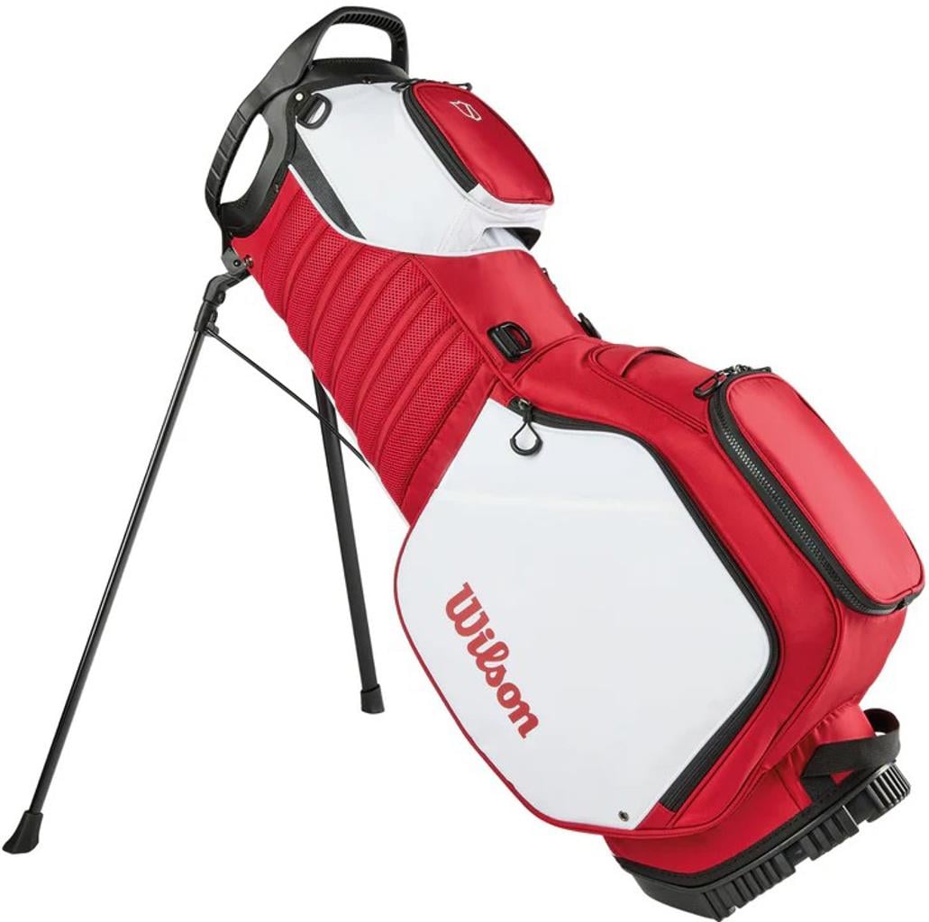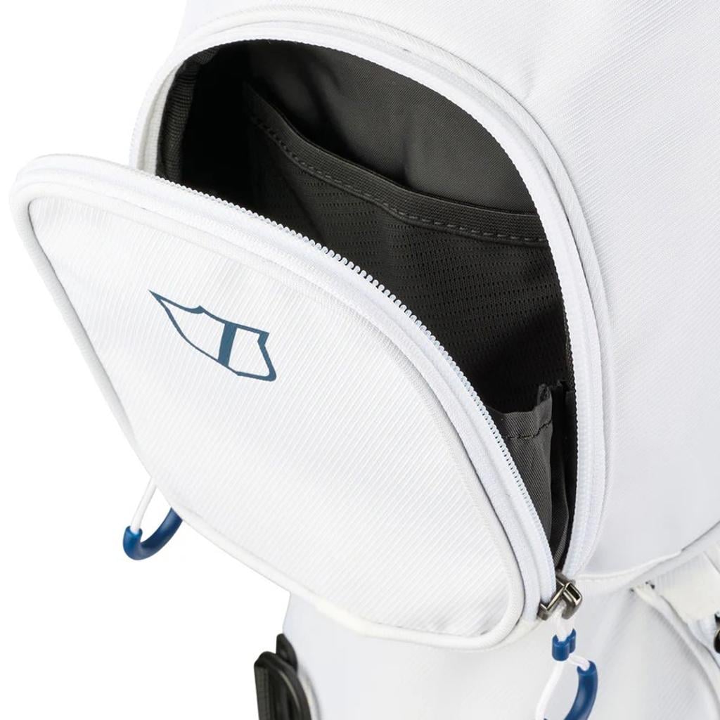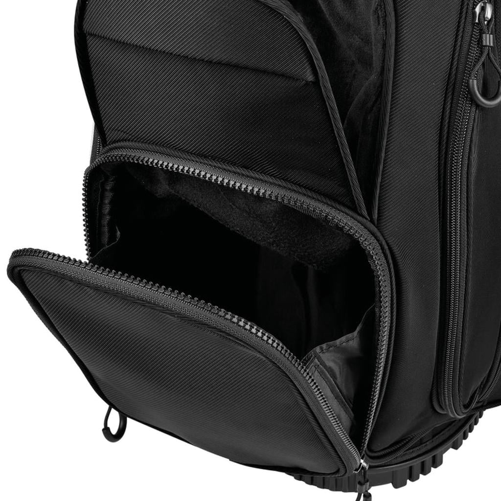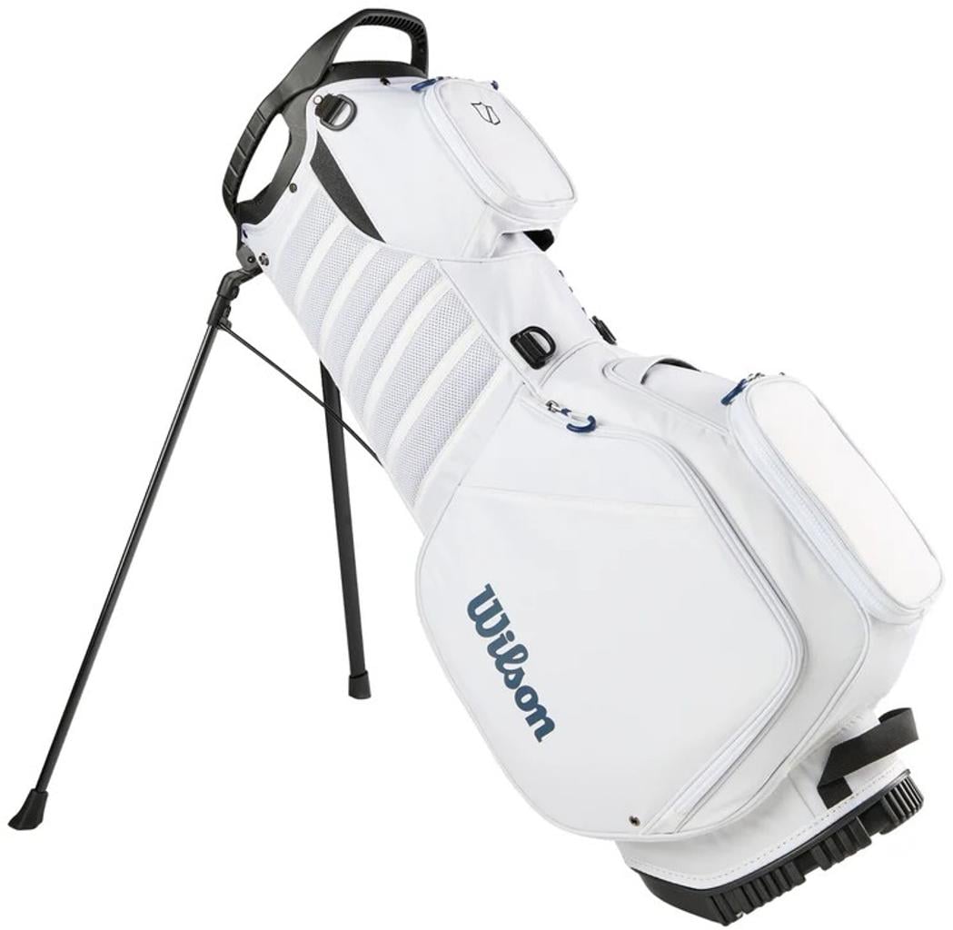 The ergonomic shoulder strap system caters to those who prefer walking the course, while a construction reinforcement system maintains the bag's structure when placed on a cart, push cart, or the ground.