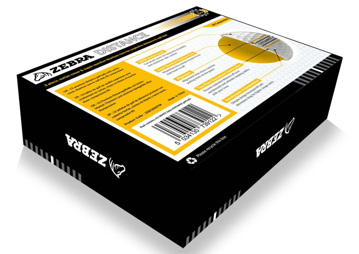 Pack of twelve Zebra distance balls